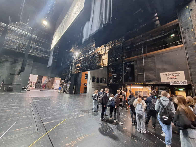 Zu Beginn der Führung durften die Schülerinnen und Schüler selbst auf der großen Bühne stehen. Von der Lichttechnik über die Tontechnik bis hin zur Bühnenmechanik – die jungen Theaterbesucher erhielten einen umfassenden Einblick in die komplexe Arbeit, die hinter einer Theaterproduktion steckt.